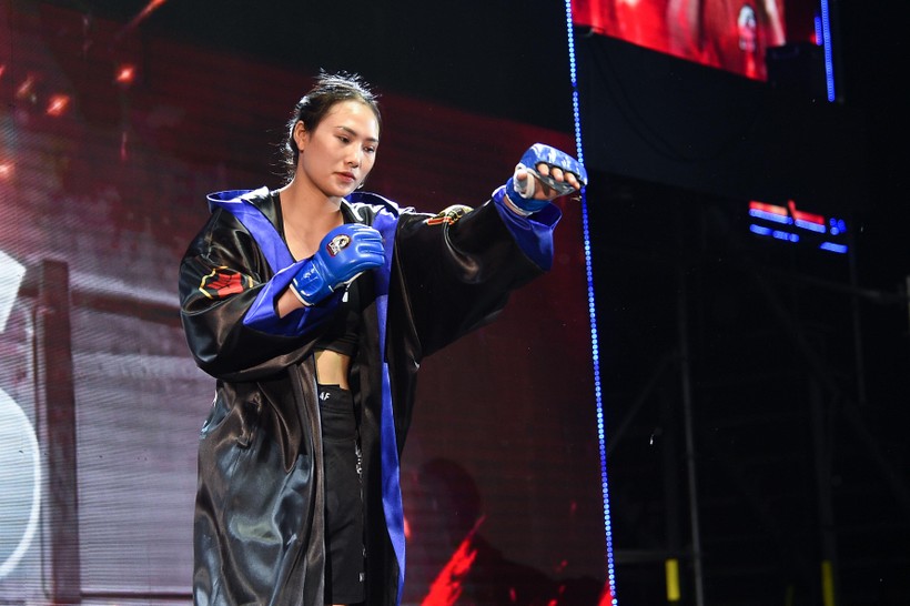 Võ sĩ Phạm Thị Nhung đã giành chiến thắng trước đối thủ Trần Thị Ngọc Ánh trong trận bán kết MMA Việt Nam Lion Championship.