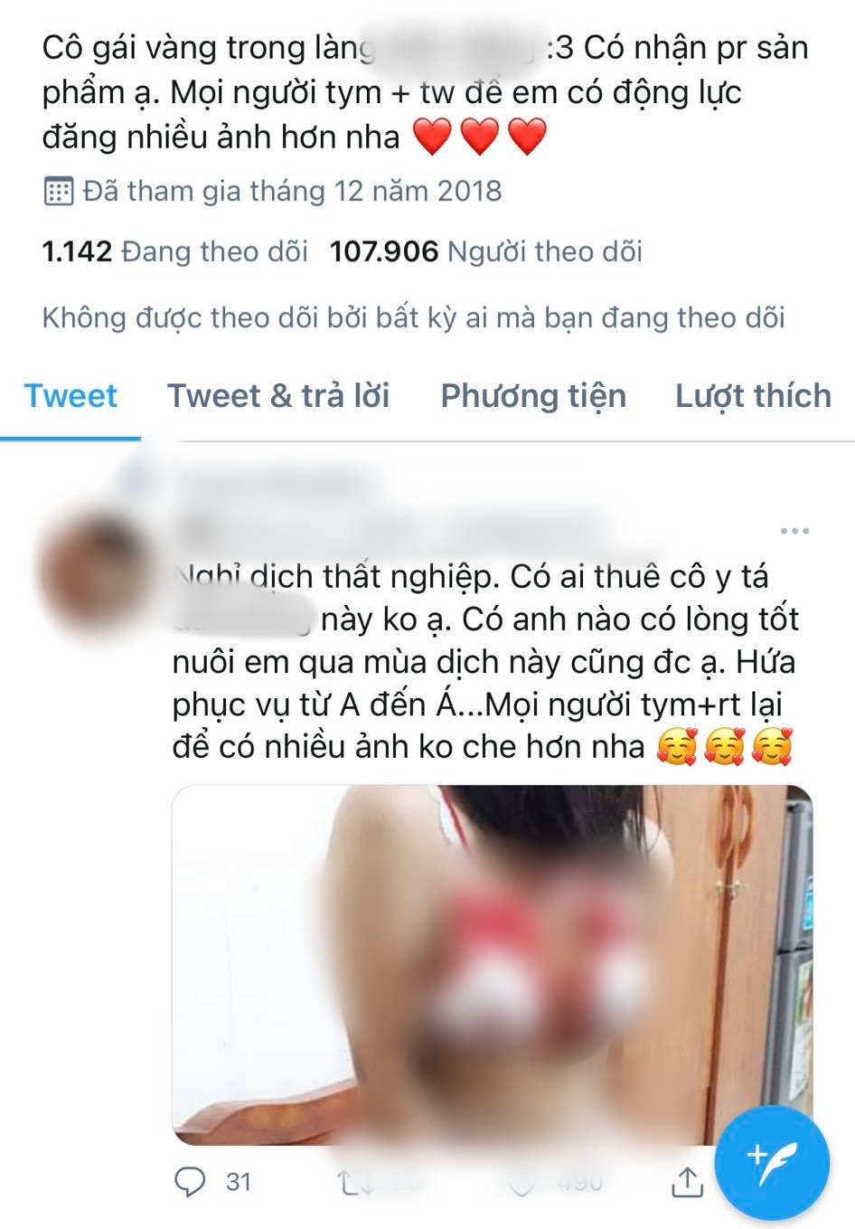 Tuy có follow đấy nhưng đó không phải là cách giúp em kiếm ra tiền. Nhờ một người bạn rỉ tai, em chuyển qua địa hạt Twitter. Nơi mà những tấm ảnh dù có lột toàn bộ cũng không bị che mờ hay “đánh nhạy cảm” bắt gỡ”, Q. kể.