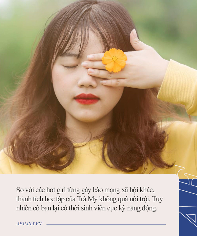 So với các hot girl từng gây bão mạng xã hội khác, thành tích học tập của Trà My không quá nổi trội. Tuy nhiên cô bạn lại có thời sinh viên cực kỳ năng động. Cô nàng từng tham gia nhiều hoạt động của Hội đồng hương Thanh Hóa tại trường Đại học Nội vụ Hà Nội, là thành viên của Ban liên lạc đồng hương sinh viên Thanh Hóa.