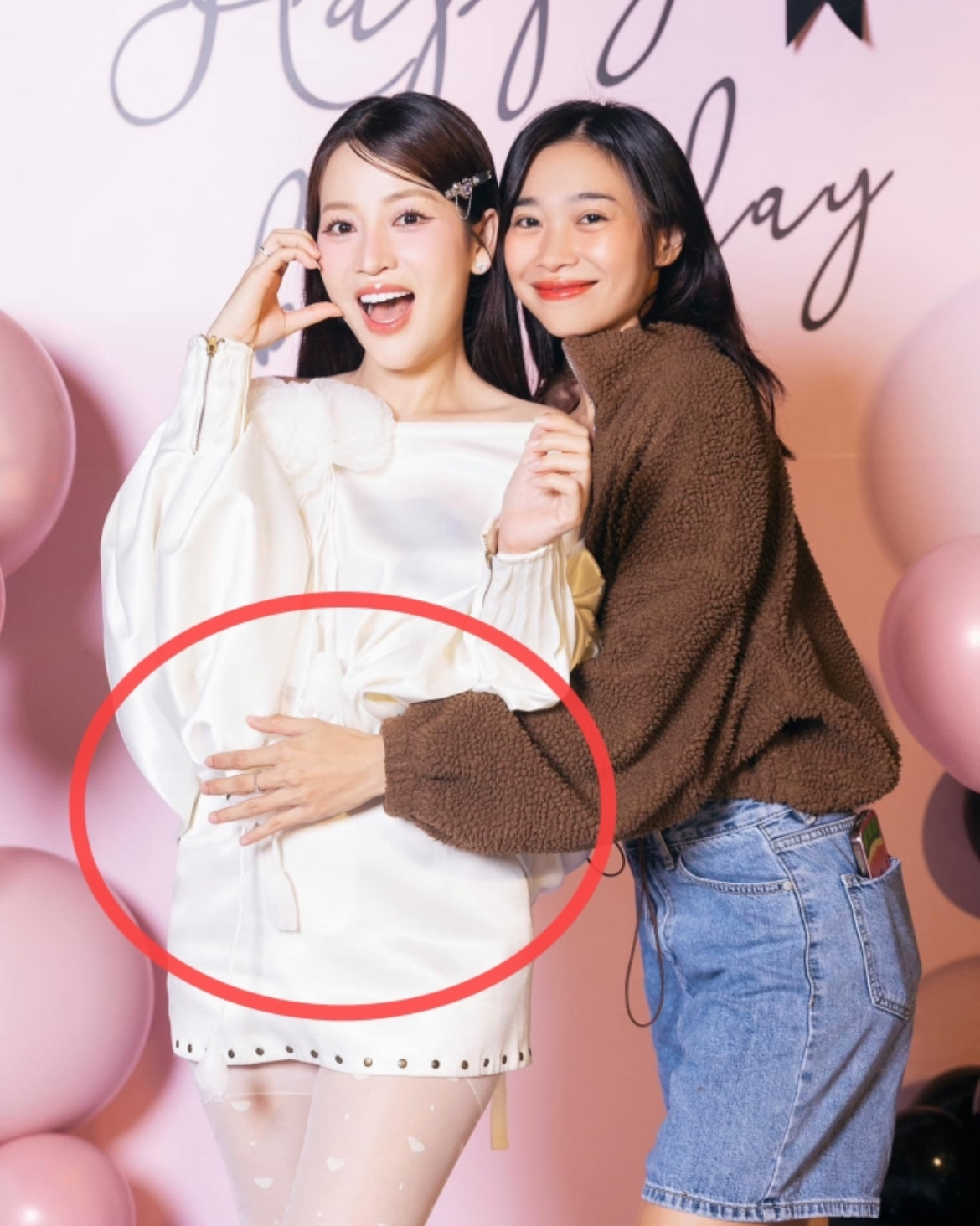 Cách đây ít hôm, Puka tổ chức tiệc sinh nhật bên những người bạn thân thiết. Hoà Minzy - 1 trong số những người bạn thân thiết của cặp đôi cũng vô tình tung hint chuyện Puka đang mang thai. Theo đó, trên trang cá nhân, Hoà Minzy đăng bức ảnh bàn tay đặt ngay vòng 2 của bà xã Gin Tuấn Kiệt, hành động như đang nâng niu. Nhiều người nhận ra cách tạo dáng của nữ ca sĩ như đang "nựng yêu" em bé trong bụng mẹ. Không chỉ thế, trong loạt ảnh của Hoà Minzy đăng tải, Puka lộ rõ vòng 2 đã nhô lên thấy rõ, giống hệt mẹ bầu không lệch đi đâu được. Không chỉ Hoà Minzy mà Nguyên Thảo - bạn thân của Puka cũng có hành động ôm vòng 2 của nữ diễn viên khi chụp ảnh.