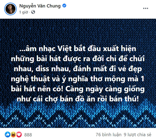 Trước khi Phí Phương Anh hé lộ thông tin mời Lê Bống và Trần Thanh Tâm đóng MV "Cánh bướm dối gian", nhạc sĩ Nguyễn Văn Chung đã đăng đàn chia sẻ về thị trường âm nhạc với lời lẽ khá bức xúc. Nhạc sĩ Nguyễn Văn Chung bộc bạch: "Âm nhạc Việt bắt đầu xuất hiện những bài hát được ra đời chỉ để chửi nhau, diss nhau, đánh mất đi vẻ đẹp nghệ thuật và ý nghĩa thơ mộng mà một bài hát nên có. Càng ngày càng giống như cái chợ bán đồ ăn rồi bán thú". Có thể thấy, việc Nguyễn Văn Chung ví von thị trường âm nhạc Việt Nam hiện tại giống như cái chợ bán đồ ăn rồi bán thú cũng đủ để thấy nam nhạc sĩ đang cực kỳ bức xúc.