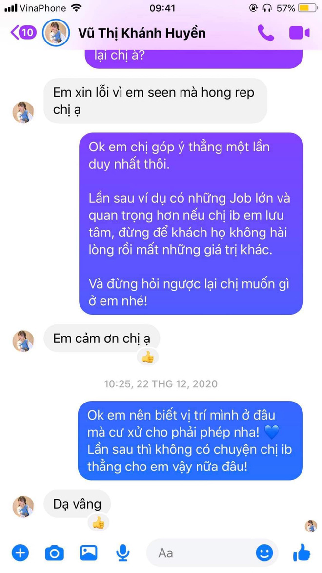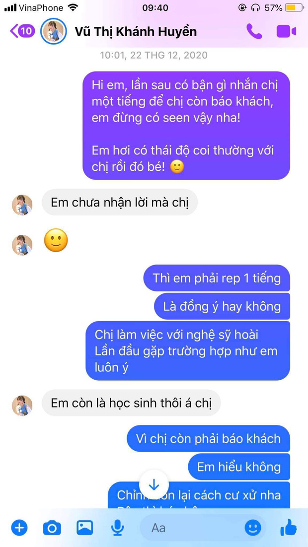 Cụ thể, cuối tháng 12/2020, M.C có nhắn tin để trao đổi công việc với Khánh Huyền và đã được trả lời. Thế nhưng sau khi M.C thông báo thông tin về sự kiện sắp tới, hot TikToker bỗng dưng seen không rep, dù M.C liên tục nhắn tin.