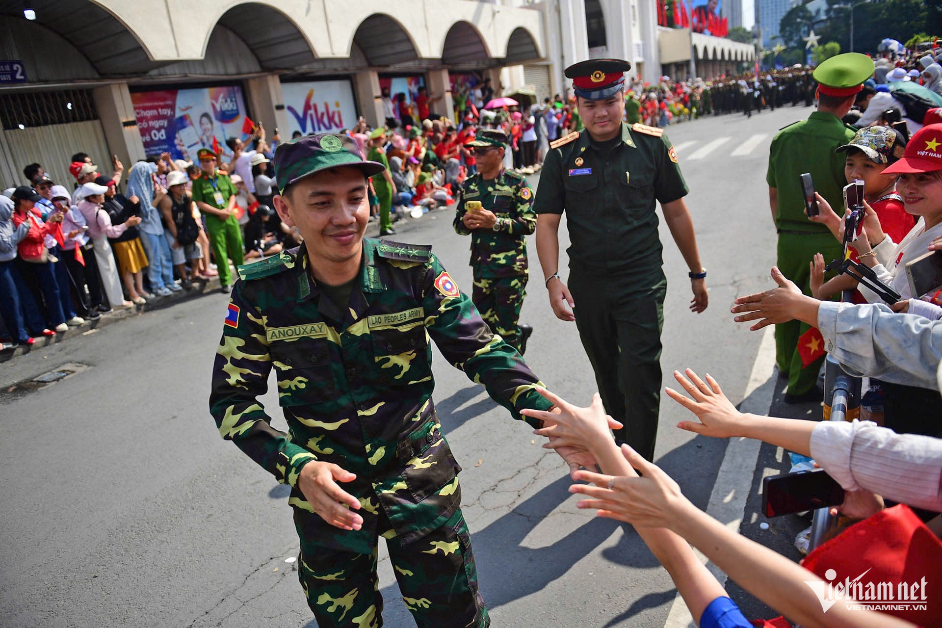 “Các anh bộ đội Lào tập luyện rất nghiêm túc, thần thái phấn khởi, làm em có cảm giác như mình đang ở nhà. Khoảnh khắc ấy, lòng em trào dâng niềm tự hào", cô gái Lào nói. Cô cũng đặc biệt xúc động khi người dân Việt Nam dành nhiều tình cảm cho khối Quân đội Lào. Đoàn Quân đội Lào đi qua các tuyến đường đều được người dân hồ hởi chào đón, tay bắt mặt mừng và xin chụp ảnh.
