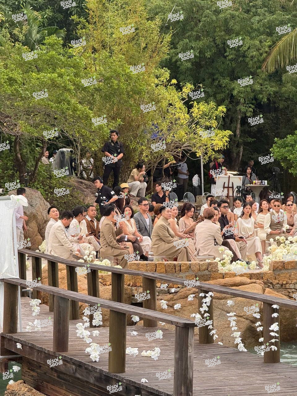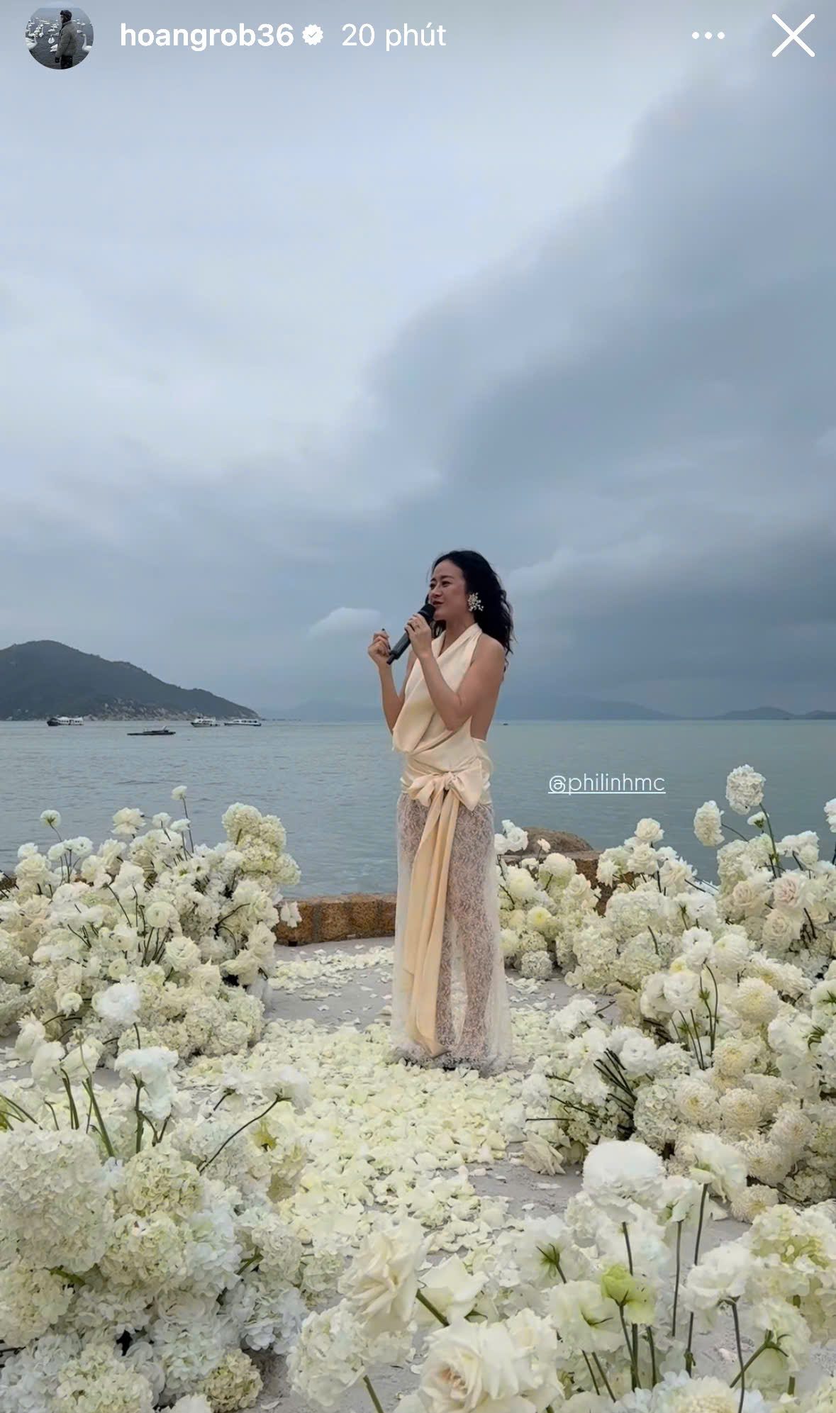 Ngay lúc này đây, những hình ảnh đầu tiên trong đám cưới trên bãi biển của cặp đôi chính thức lộ diện qua chia sẻ của khách mời. Được biết, hôm nay thời tiết Nha Trang có mưa nhẹ, song đến giờ diễn ra sự kiện thì trời khô ráo, có gió nhẹ càng tăng thêm sự lãng mạn cho sự kiện.