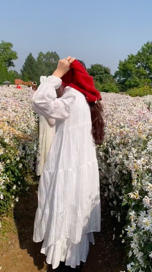 Mới đây, mạng xã hội đã lan truyền đoạn clip ghi lại cảnh một cô gái trẻ xinh đẹp ở vườn cúc hoạ mi thay đồ có lẽ để chụp ảnh.
