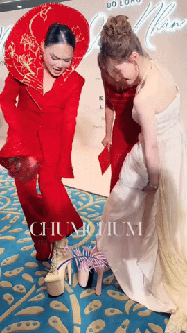 Tại thảm đỏ, Phạm Như Phương còn có màn gặp gỡ cực hài hước với ca sĩ Hòa Minzy và Tiktoker Phạm Thoại. Cựu vận động viên TDDC trò chuyện vui vẻ cùng đàn chị. Hai cô nàng còn khiến dân tình thích thú khi có màn đọ giày "cà kheo" với Phạm Thoại. Cả ba cùng khoe đôi giày cao 20cm. Tiktoker triệu view Phạm Thoại còn nhắc Như Phương không phải ngại, vì ai cũng biết chiều cao của cô rồi.