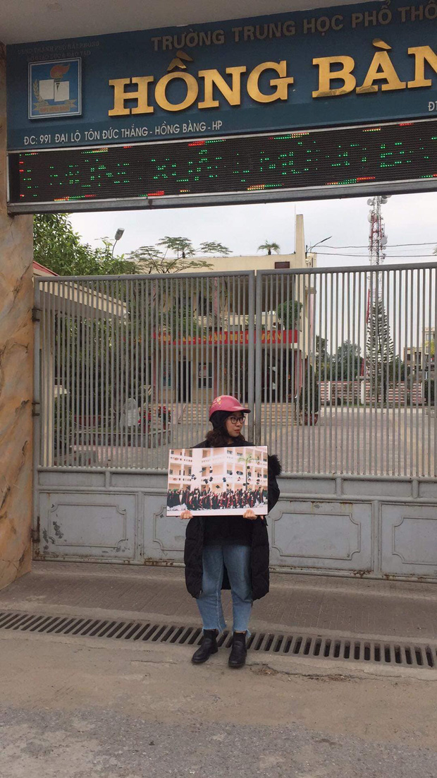 Theo chia sẻ của chủ nhân bức ảnh - Đặng Thị Hồng Mai, nhân vật chính trong bức ảnh gây sốt là lớp trưởng của lớp cô. Cả lớp trước đó đã thống nhất với nhau chọn dịp Tết này để có thể gặp mặt đông đủ nhất nhưng đến ngày hẹn, không một ai có mặt nên cô nàng lớp trưởng đã cầm ảnh tập thể lớp chụp check-in ở cổng trưởng xem như buổi họp lớp có đầy đủ thành viên.