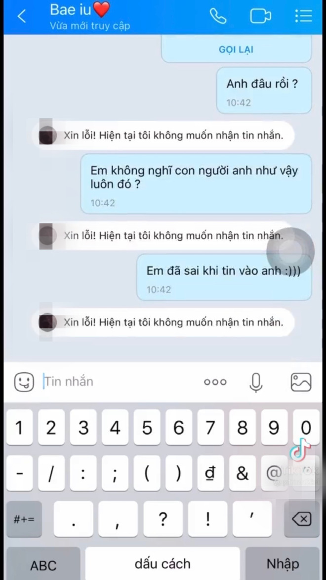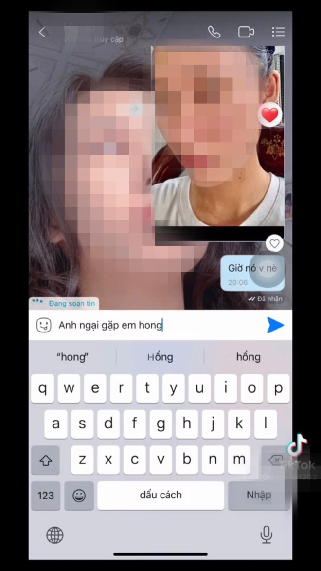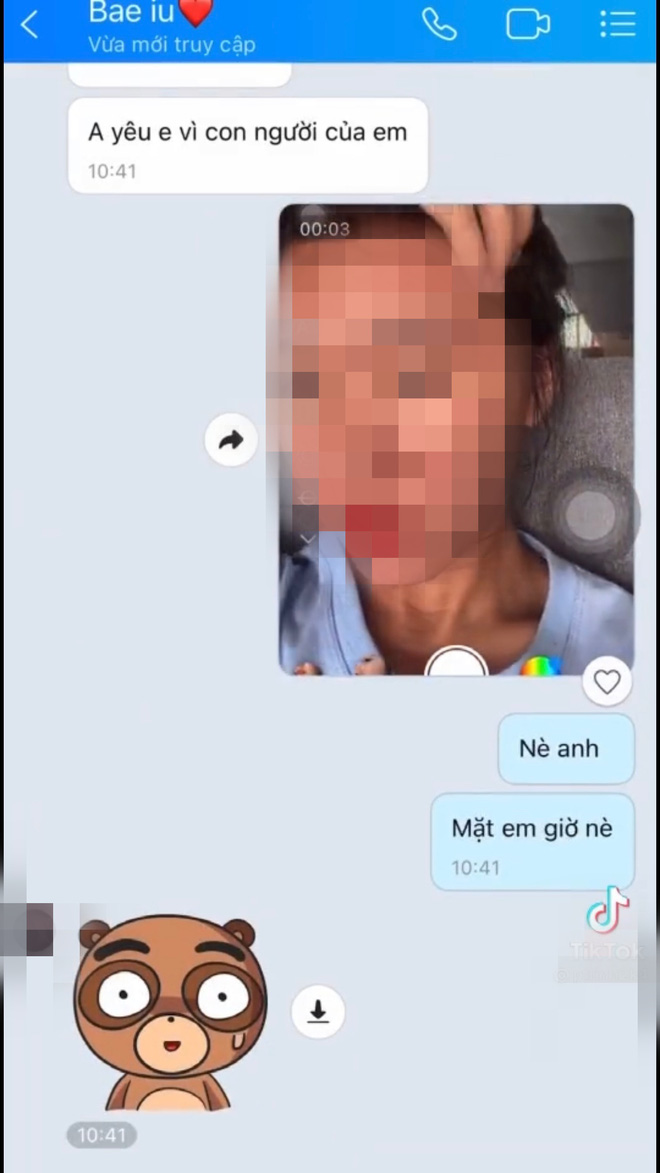 Nhưng khi được gửi cho khuôn mặt mộc chi chít mụn thì bạn trai lập tức lật mặt, từ chối cuộc gọi và chặn cô nàng ngay lập tức. P.T vô cùng sốc vì hành động đó, buồn bã nhận ra chỉ cần một chút thử lòng thôi đã biết bộ mặt thật tình yêu qua mạng của mình.