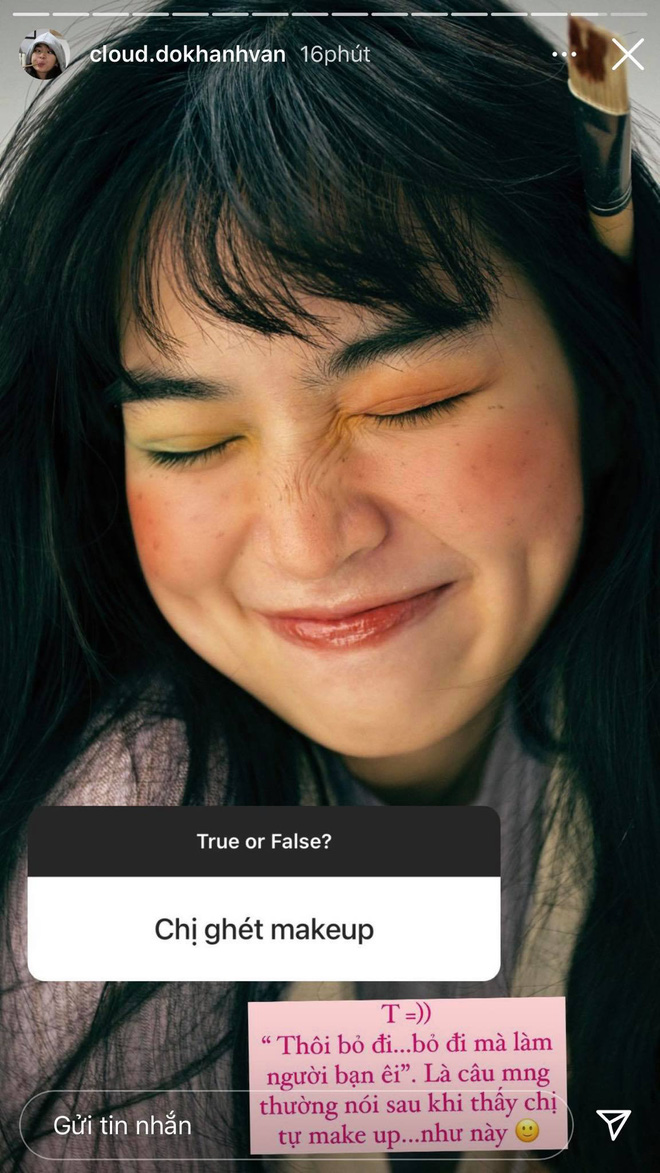 Không dừng lại ở đó, gái xinh còn thoải mái nói về việc makeup và làm đẹp. Khánh Vân cho biết mình ghét makeup, mỗi lần tự makeup đều gặp phải sự phản đối dữ dội của bạn bè và mọi người xung quanh.