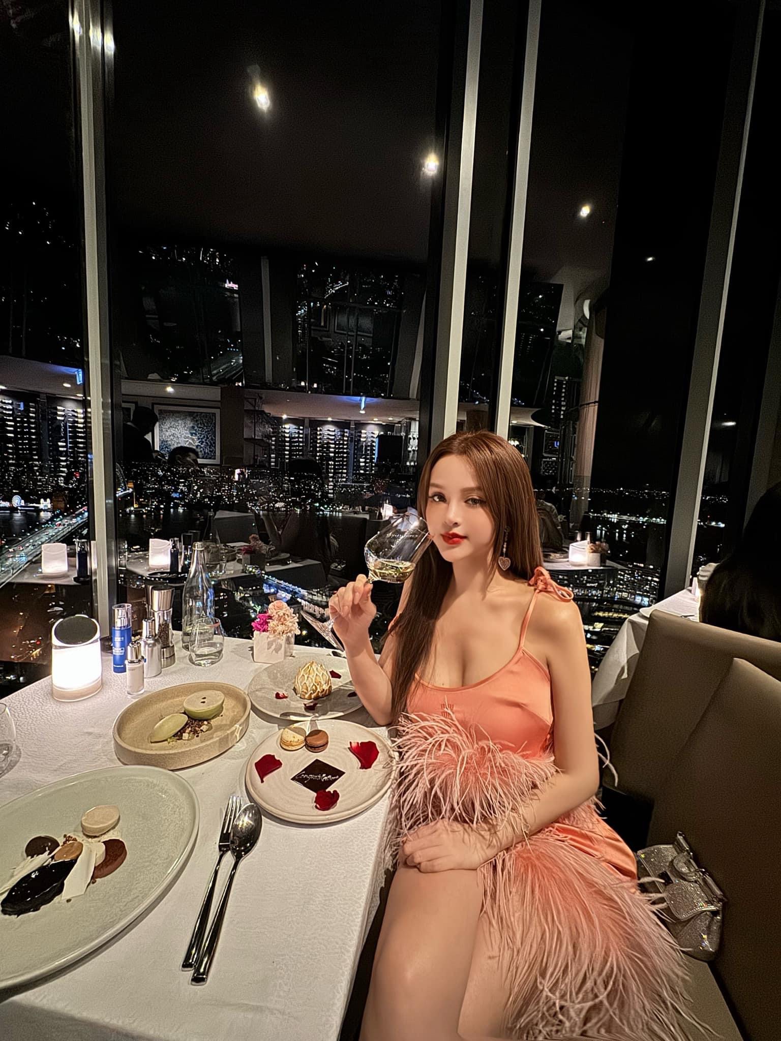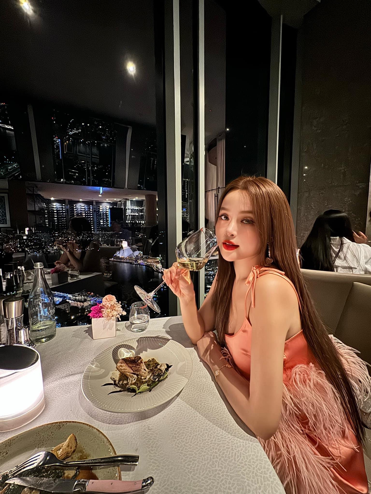 Vào ngày 20/3, Huyền Baby đã đăng tải hình ảnh ngọt ngào bên ông xã doanh nhân. Người đẹp sinh năm 1989 đang tận hưởng chuyến đi du lịch tại Sydney, Úc. "Phú bà" Huyền Baby mặc chiếc váy quyến rũ màu hồng, check-in "chanh xả" tại một nhà hàng sang trọng.