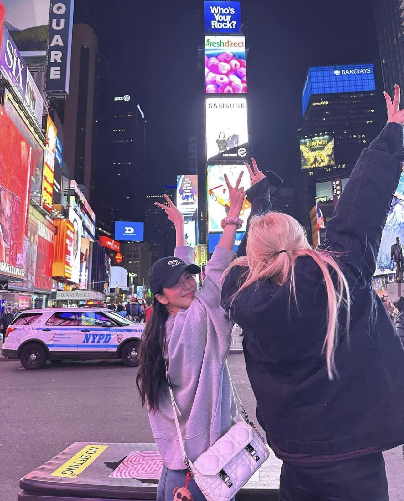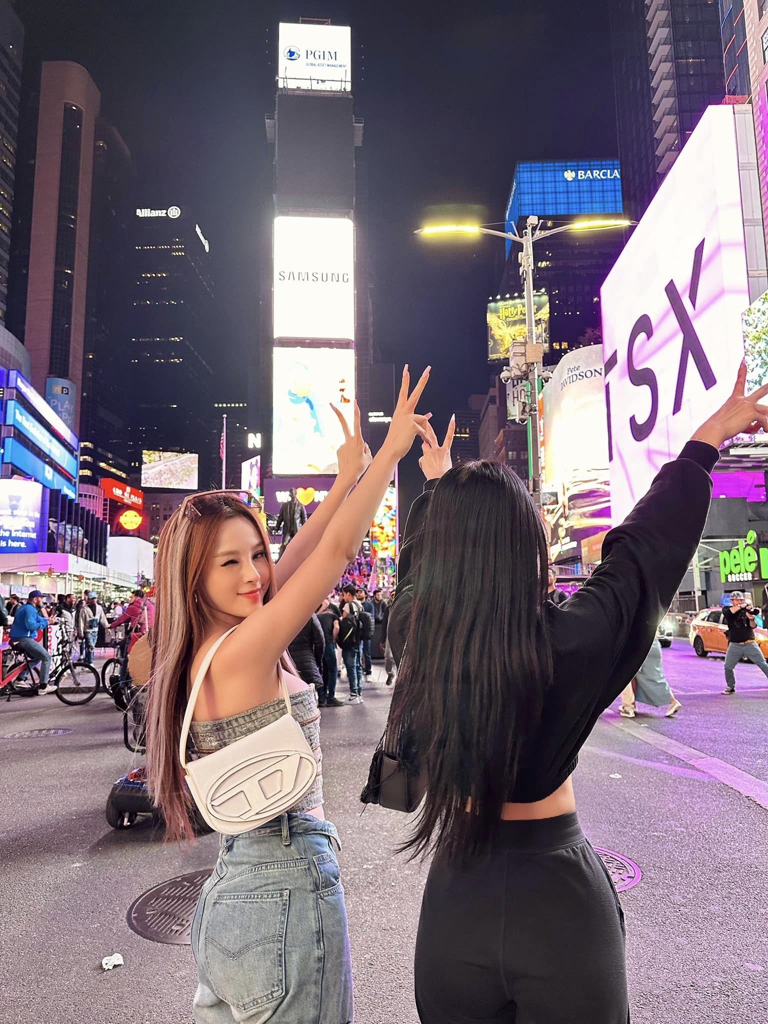 Đặc biệt hơn, trong loạt ảnh ở Mỹ lần này, Huyền Baby còn cùng người bạn thân tạo dáng y hệt Jisoo và Rosé (BLACKPINK).