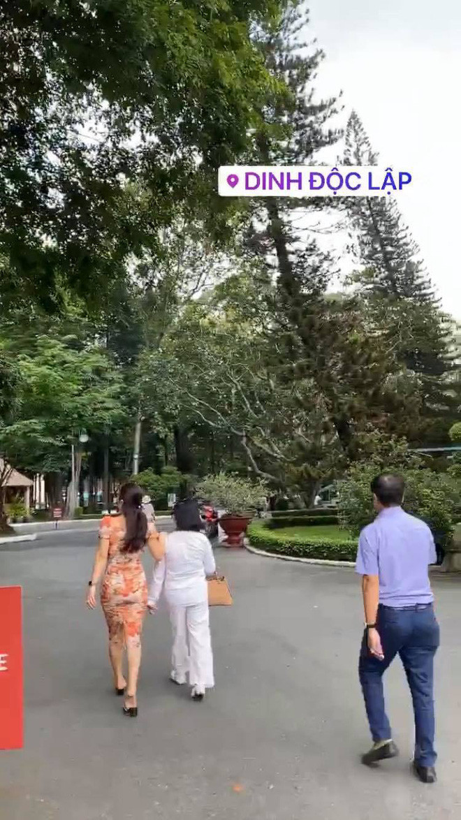 Trong chuyến đi này, Huỳnh Anh như hướng dẫn viên của 2 bậc phụ huynh nhà Quang Hải. Cô dẫn bố mẹ chàng cầu thủ đi thăm quan những địa điểm nổi tiếng tại thành phố mang tên Bác, chẳng hạn như Dinh Độc Lập.