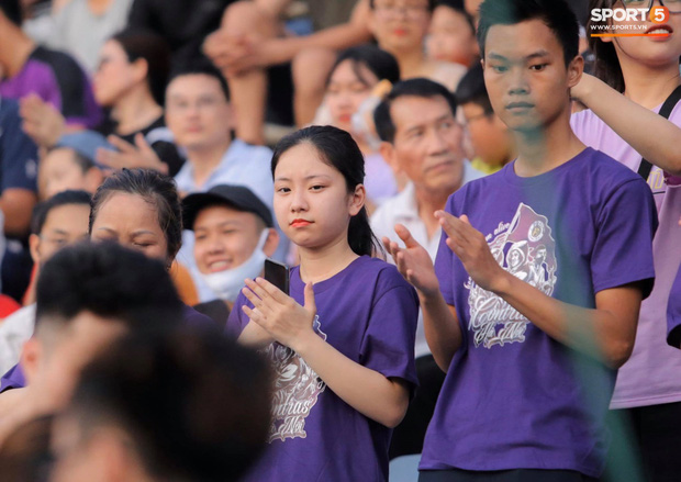 Fan nữ xinh xắn chiếm spotlight trên khán đài sân Hàng Đẫy.