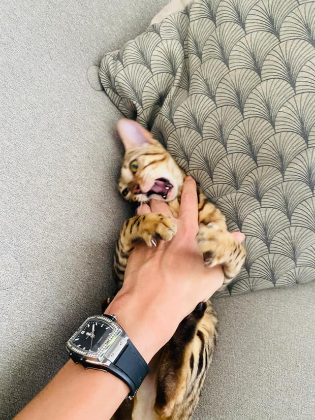 Mới đây, Huỳnh Phương tiếp tục thể hiện sự "lẻ bóng" của mình khi đăng lên Facebook dòng trạng thái: "Lễ 2 cha con ở nhà". Kèm theo đó là bức hình chụp anh chàng bên cạnh chú mèo vằn hổ. Bên dưới phần bình luận, Huỳnh Phương bonus thêm một tấm khác chỉ chụp tay mình đang trêu chú mèo con.