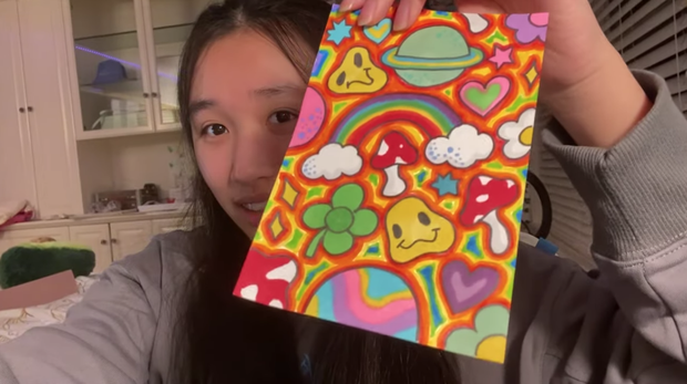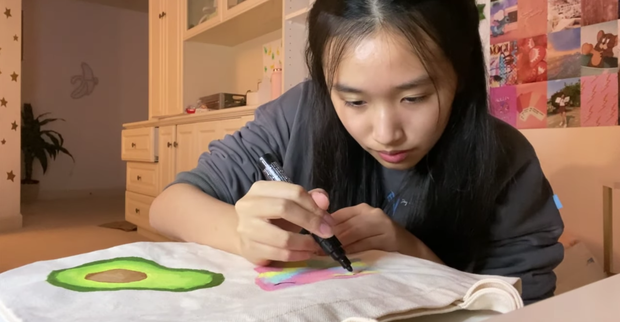 Phần còn lại trong clip thử thách vẽ, Jenny Huỳnh đã chứng minh mình không chỉ mê vẽ mà còn vẽ rất đẹp và sáng tạo, từ vẽ kiểu doodle đến vẽ lên túi tote đều thành công. Tuy nhiên, đến phần vẽ qua filter của TikTok thì Jenny Huỳnh cũng gặp đôi chút khó khăn.