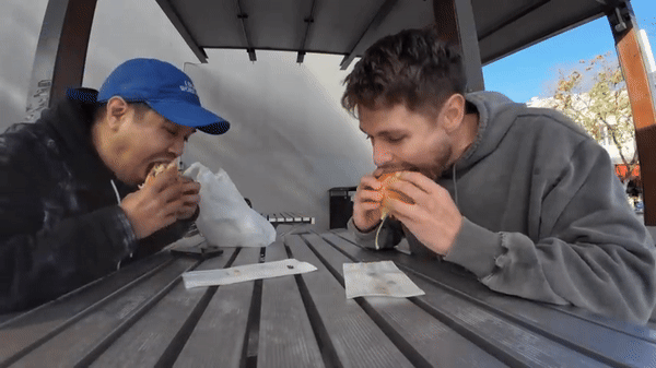 "Nó thật điên rồ! Nó to và đầy đặn. Hãy nhìn vào mặt cắt của nó, chiếc bánh mỳ với thịt heo quay này thật tuyệt, có nhiều cà rốt quá. Tôi đã ăn nhiều hàng bánh mỳ ở nước ngoài rồi nhưng ở đây đúng là rất ngon. Pa tê và thịt heo heo nhà làm da giòn là thứ khiến tôi cực kỳ tâm đắc. Nó khiến tôi nhớ về bánh mỳ heo quay ở Việt Nam".