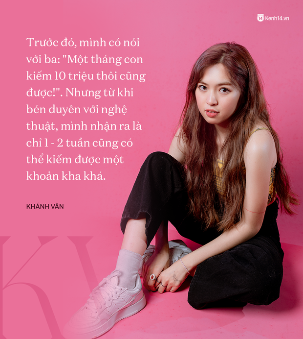 Trước đó, mình cũng nói với ba là: "Một tháng con kiếm 10 triệu thôi cũng được!". Nhưng từ khi bén duyên với nghệ thuật, mình nhận ra là chỉ 1 - 2 tuần thôi cũng có thể kiếm được một khoản kha khá. Vậy là mình cứ lấn sân dần, đi quay nhiều.