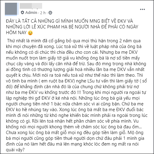 Tuy nhiên, đáng chú ý nhất là chia sẻ từ chính quản trị viên của group anti này sau khi phía Khánh Vân có động thái mời công an vào cuộc. Cụ thể, người này cho biết mình chính là em họ của Khánh Vân, đồng thời phơi bày toàn bộ những điều được cho là "con người thật" của nữ diễn viên Mắt Biếc.