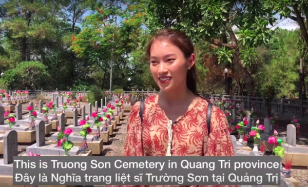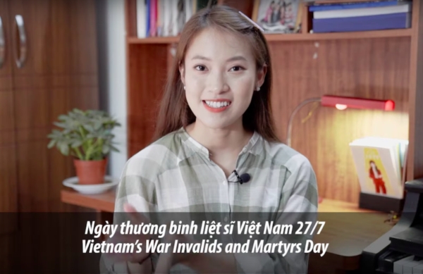 Mở đầu clip là những hình ảnh đi thắp hương, viếng những người anh hùng của Khánh Vy tại nghĩa trang liệt sĩ Trường Sơn ở tỉnh Quảng Trị, cô kính cẩn trước những tấm bia. Cũng trong video dài gần 8 phút, Khánh Vy cũng giới thiệu thêm nhiều từ mới tiếng Anh liên quan đến ngày này để người xem có thêm vốn từ, tăng sự hiểu biết hoặc có thể kể lại cho những người bạn nước ngoài.
