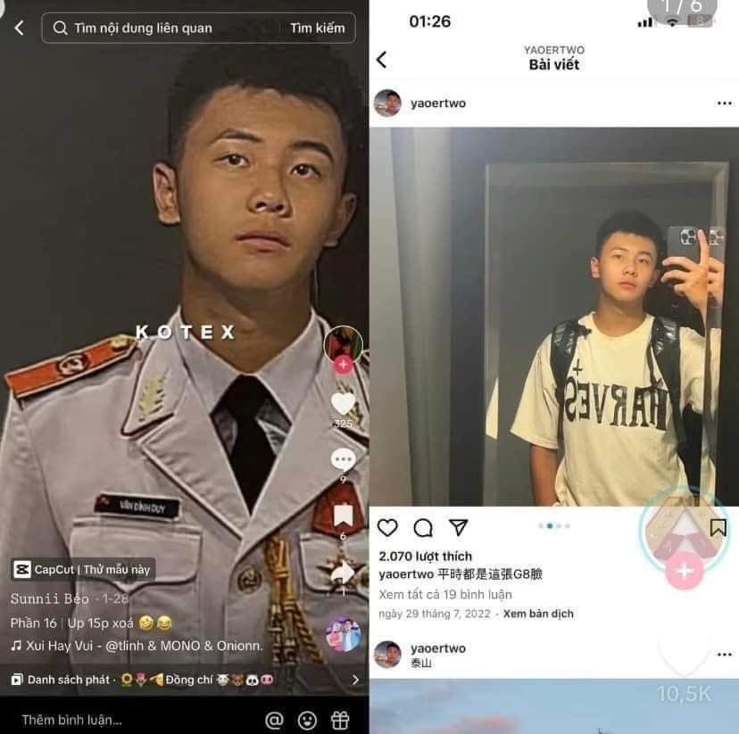 Nhưng mới đây, không ít dân mạng đã phát hiện: hóa ra tất cả chỉ là chiêu trò dàn dựng. Bởi lẽ, nam thanh niên "đi bộ đội và qua đời" kia hóa ra thậm chí còn không phải người Việt Nam, mà là một KOI bên Trung Quốc. Anh này sở hữu ngoại hình điển trai, vóc dáng săn chắc gọn gàn cũng như thường xuyên cập nhật các hoạt động của mình trên mạng xã hội. Và những hình ảnh của anh đã bị cô gái L.N.L.Anh lấy về để câu view.