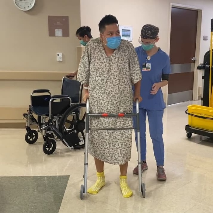 Mới nhất, Khoa Pug làm clip tự bước đi mà không cần dụng cụ hỗ trợ trên đôi chân 1m75. Khác với những lần trước, Khoa Pug không còn nhăn nhó hay tỏ ra đau đớn nữa mà anh có vẻ khả tự tin khi đứng một mình.