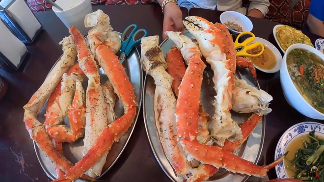 Bên cạnh những món ăn được gia đình chú Hải chuẩn bị để đón Khoa Pug, hai món cua hoàng đế hấp và tôm hùm nướng bơ cháy tỏi đặc biệt nổi bật trên mâm cơm. Ai nấy đều tấm tắc khen ngon, cho rằng số tiền bỏ ra là hoàn toàn xứng đáng.