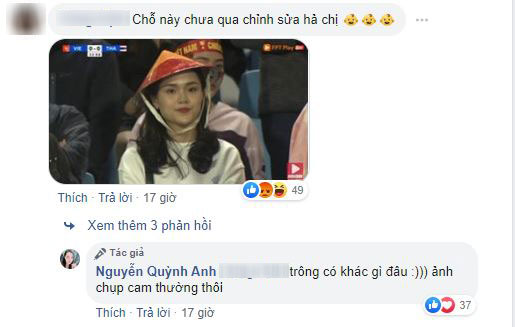 Chuyện sẽ không có gì đáng nói nếu như một dân mạng không vào "cà khịa" Quỳnh Anh khi thả ngay một bức hình được chụp bằng camera thường, không qua chỉnh sửa của cô nàng ở dưới phần bình luận. Dù không nói rõ nhưng ai cũng hiểu người bạn này có ý nói Quỳnh Anh không được xinh như trong ảnh tự đăng.