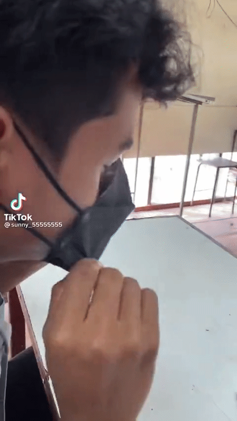 Theo đoạn clip ghi lại, nam sinh khiến nhiều người ngỡ ngàng khi kéo chiếc khẩu trang khỏi miệng. Lúc này, nhiều người ngay lập tức phát hiện bên trong chiếc khẩu trang được ghi chi chít các công thức. Hóa ra, đây lại là một chiêu trò gian lận thi cử mới mà nam sinh vừa nghĩ ra.
