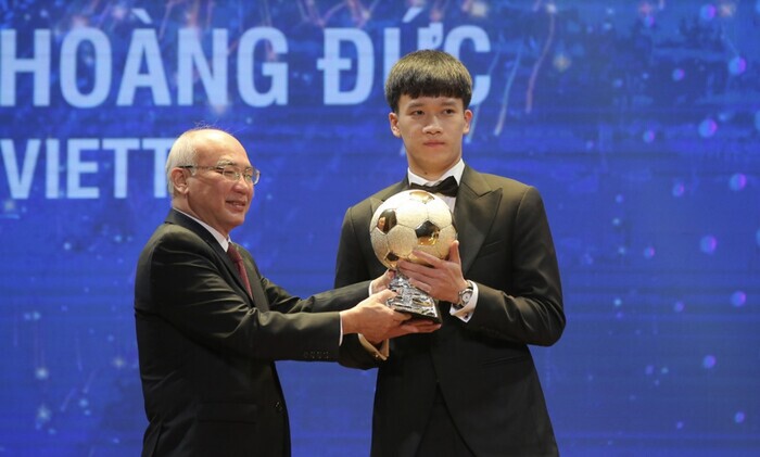 Tối 16/2, lễ trao giải Quả bóng vàng Việt Nam 2021 đã diễn ra tại TP HCM. Với dấu ấn trong màu áo Viettel ở mùa giải vừa qua cũng như phong độ ổn định trong màu áo Đội tuyển Việt Nam, Nguyễn Hoàng Đức đã xuất sắc mang về danh hiệu Quả bóng vàng.