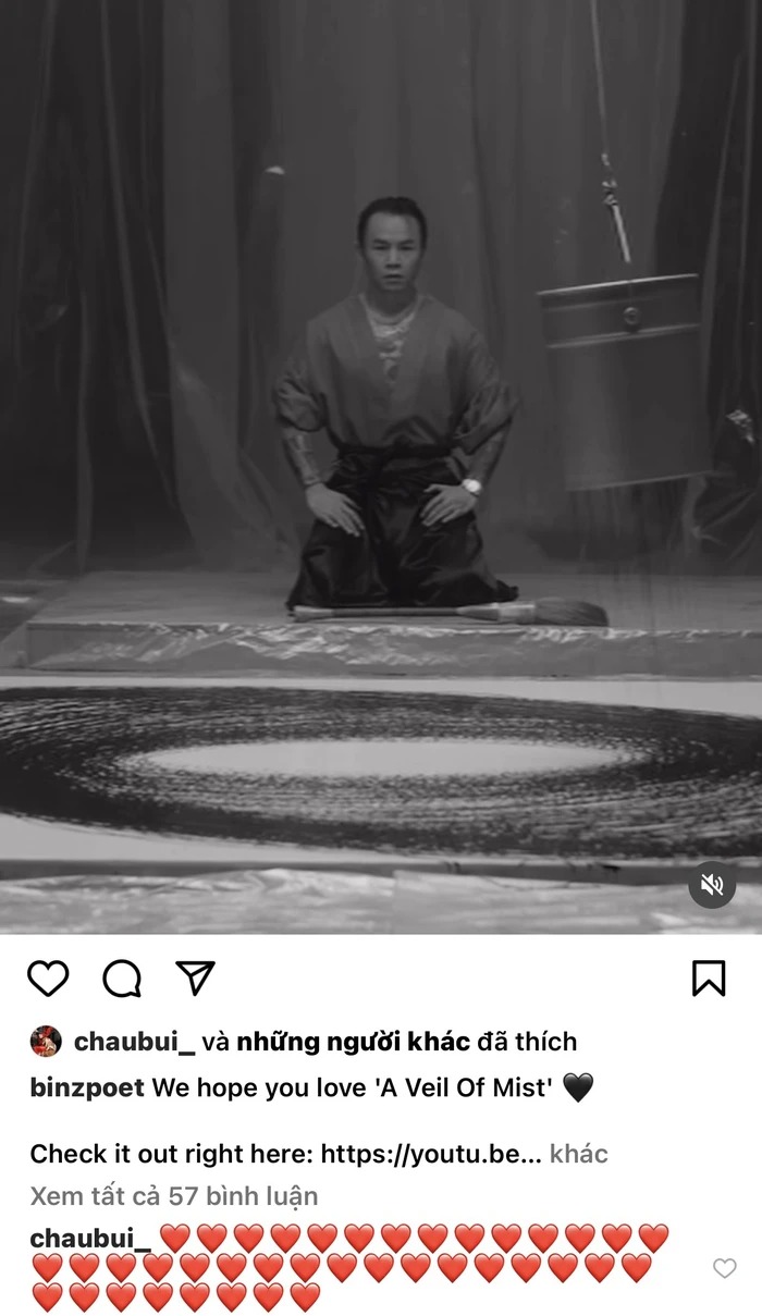 Mới đây, trên Instagram Binz "nhá hàng" sản phẩm mới với gam màu đen trắng, hứa hẹn sẽ là dự án đầy độc đáo. Đáng chú ý, ngay dưới bài đăng Châu Bùi có động thái khiến công chúng "đứng ngồi không yên". Cụ thể, nữ fanshionista thả một loạt icon biểu tượng trái tim gửi đến người ấy. Mặc dù không nói gì nhưng qua những biểu tượng này người hâm mộ cũng đủ hiểu cô nàng muốn nhắn gửi Binz điều gì.