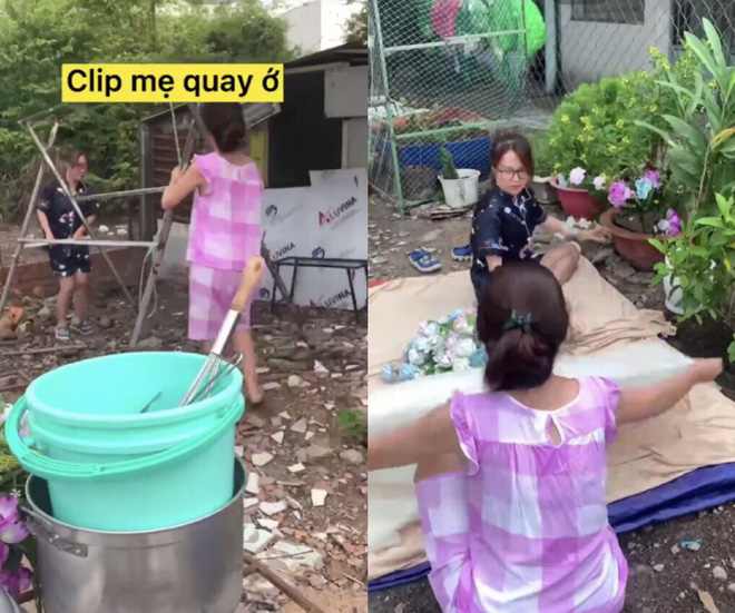 Cụ thể, đoạn clip ghi lại quá trình cô nàng setup bối cảnh, sắp đặt phụ kiện cho buổi chụp hình. Trong đó còn có sự tham gia của bố mẹ Hồng Vy, giúp chị em cô hoàn thành bộ ảnh.
