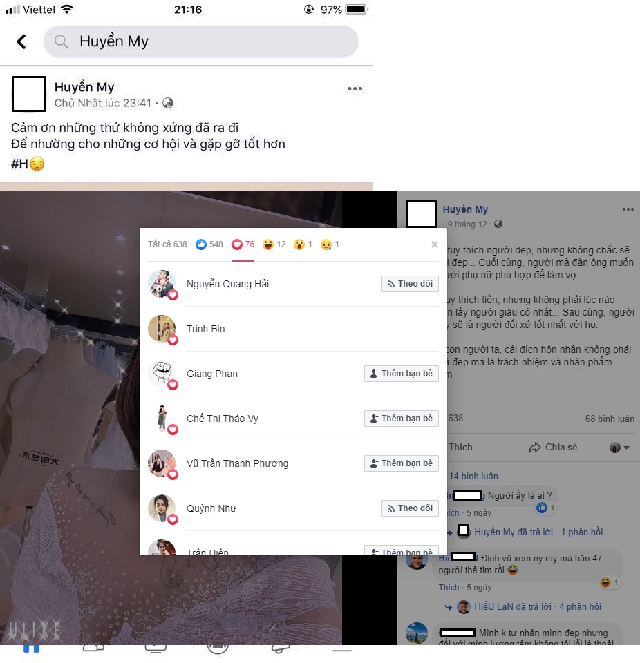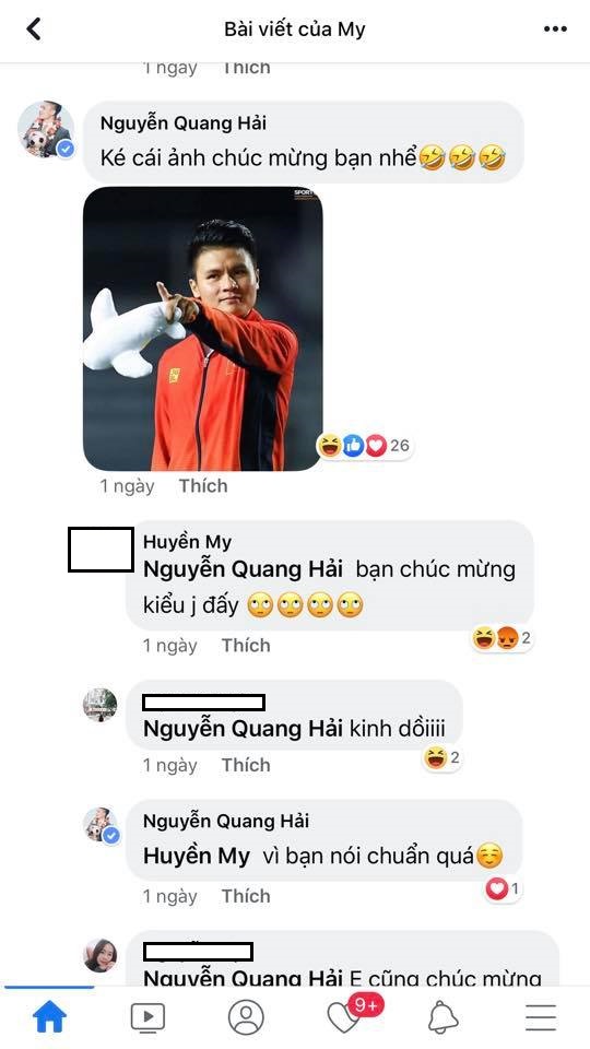 Theo dõi Facebook cô nàng Huyền My có thể thấy Quang Hải và Huyền My tương tác với nhau khá nhiều, thậm chí một người tự xưng là em gái Huyền My còn công khai nhận Quang Hải là anh rể khi cầu thủ này xuất hiện trong buổi sinh nhật của cô nàng.