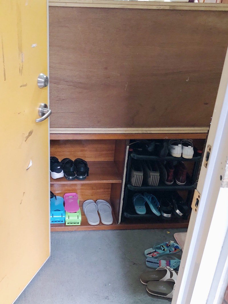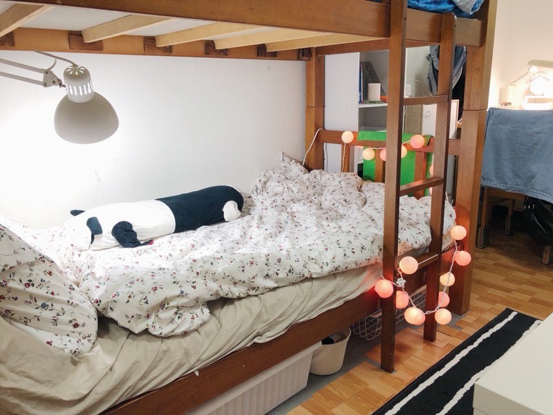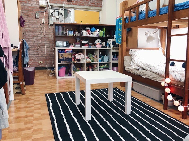 Vì muốn gắn bó với kí túc xá giá rẻ này lâu dài, thế là 3 cô gái bắt tay nhau cùng "cải tạo" lại nó. Việc làm đầu tiên chính là các cô gái đã nhờ bố mình di chuyển lại đồ đạc vào vị trí thích hợp. Tủ để đồ được tận dụng để làm tủ giày, cũng để tạo ra lối ngoặt vào phòng. Sàn nhà từ màu gạch men trắng lạnh lẽo cũng được dán giấy vân gỗ để tạo cảm giác ấm cúng. Giữa phòng được bố trí thêm một chiếc thảm nhỏ cùng 1 chiếc bạn, tạo không gian tựa như phòng khách, giúp 3 cô gái có nơi ngồi đàm đạo, tám chuyện.