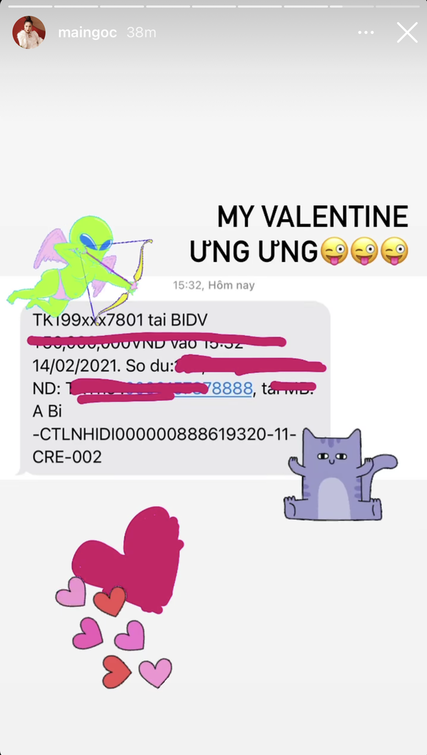 Valentine năm nay trùng với mùng 3 Tết nên nhiều cặp đôi đã tranh thủ gộp luôn khoản lì xì với quà lễ Tình nhân. Kết quả là ra con số trên trời như số tiền mà Khánh Linh - bà xã trung vệ Bùi Tiến Dũng nhận được từ chồng. Dụi mắt nhìn cho kỹ nha, là 222.222.222 đồng đấy!