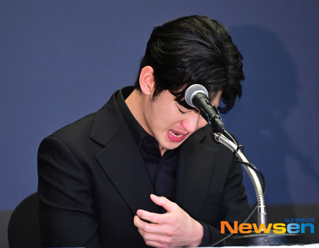 Xuất hiện tại họp báo chiều 31/3, Kim Soo Hyun lên tiếng xin lỗi và khóc không ngừng vì lùm xùm giữa anh và nữ diễn viên quá cố Kim Sae Ron. Đây là lần đầu Kim Soo Hyun xuất hiện công khai kể từ ngày 10/3, sau khi gia đình Kim Sae Ron tố cáo nam diễn viên đã hẹn hò với cô trong 6 năm, từ khi cô còn là vị thành niên. Công ty quản lý Gold Medalist đã thông báo trước rằng không có phần hỏi đáp với báo chí, mà chỉ đưa ra tuyên bố chính thức.