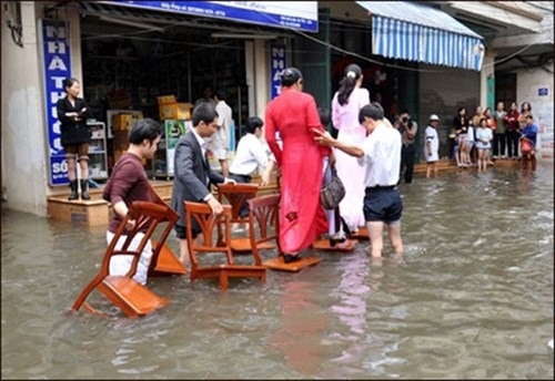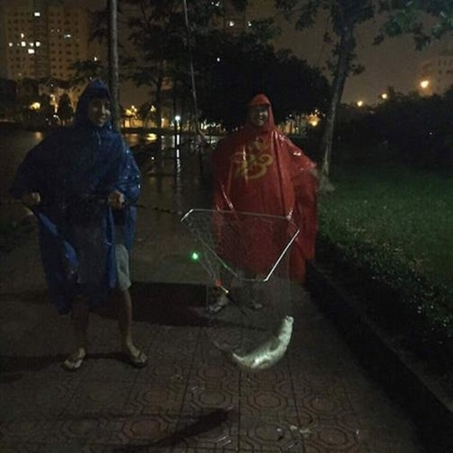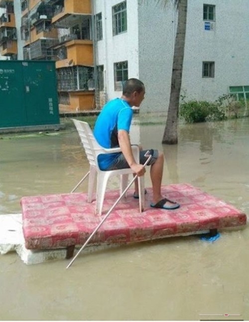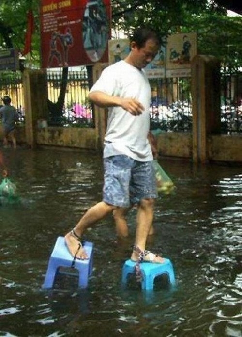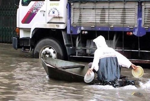 Ngày mưa nước ngập cực khổ là vậy nhưng người dân Việt vẫn rất lạc quan và sáng tạo, nghĩ ra đủ cách chống chế khiến người khác "cười chết".