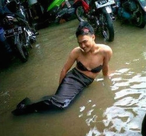 Trời mưa ngập một phát là em nó hiện nguyên hình ngay. |