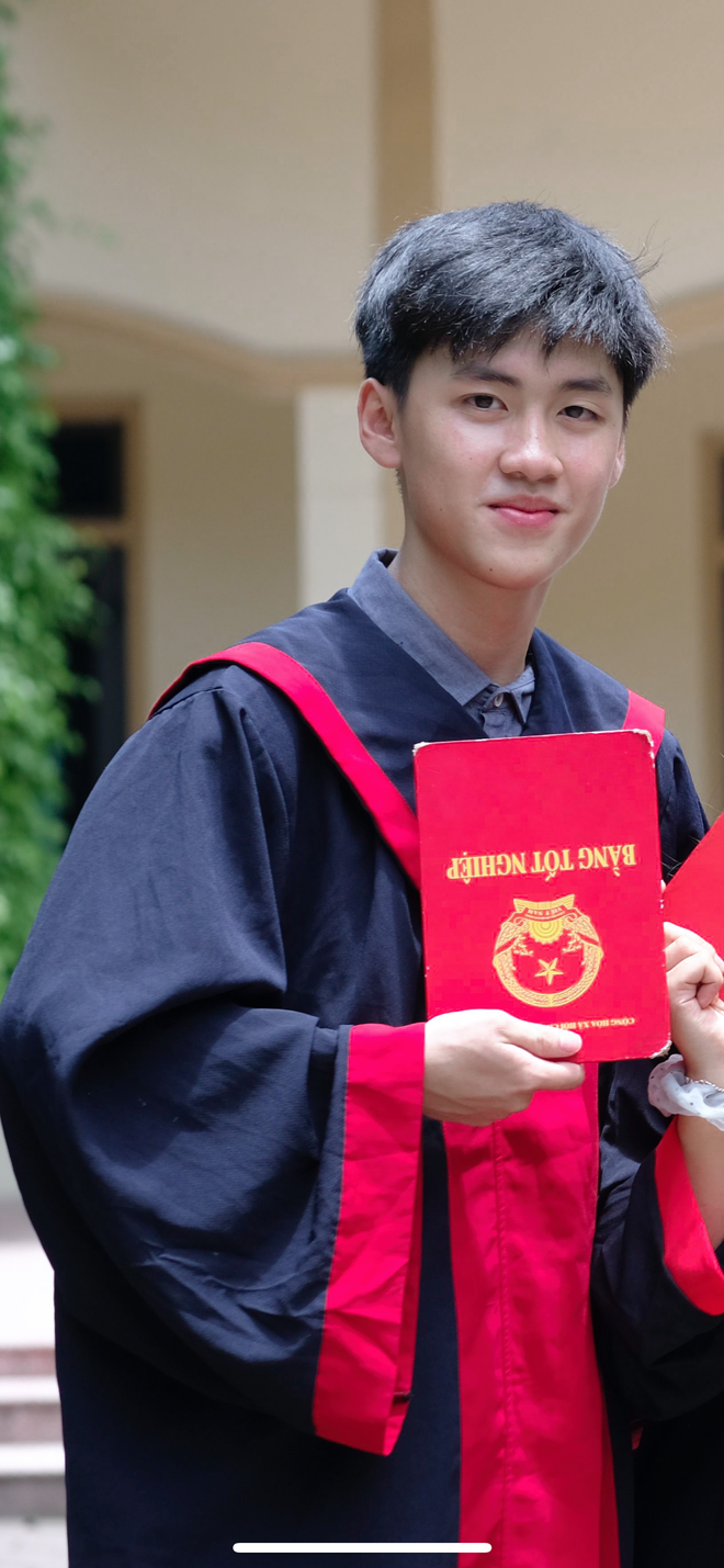 Được biết, tại trường Phan, 10X theo học chuyên Tiếng Pháp và từng đạt giải Khuyến khích cấp tỉnh môn học này. Trong kỳ thi tốt nghiệp THPT Quốc gia năm ngoái, anh chàng đạt 27,15 điểm cho khối xét tuyển của mình và xuất sắc trúng tuyển vào Đại học Ngoại thương.