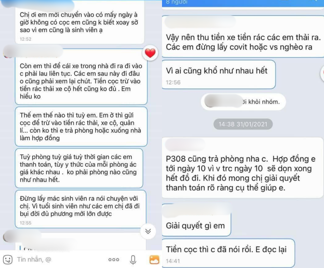 Ở được mấy hôm cô áp đủ thứ phí vô lý ngoài hợp đồng. Tụi em ý kiến thì chị ấy chửi thậm tệ: ‘Ở không ở được thì biến’.