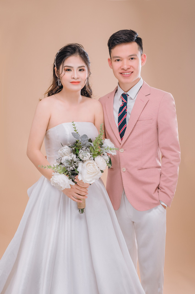 Chia sẻ thêm về dự định sau khi cưới, cô dâu 9X cho biết sẽ tiếp tục đi thực tập ở trường THPT cách nhà 15 km. "Đi dạy mùa dịch thì công việc nhiều hơn khi mình phải kiểm tra thân nhiệt và yêu cầu học sinh rửa tay khô trước khi bước vào lớp. Mình cũng thường xuyên lau dọn lớp học bằng hóa chất nữa".