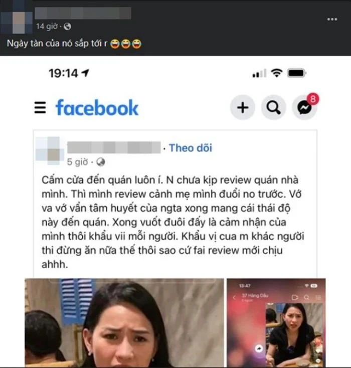 Cụ thể, một thành viên cho biết chủ một quán ăn tuyên bố cấm cửa Hà Linh đến quán mình: “Nó (Hà Linh -PV) chưa kịp review quán nhà mình thì mình review cảnh mẹ mình đuổi nó trước. Vớ va vớ vẩn, tâm huyết của người ta xong mang cái thái độ này đến quán”.