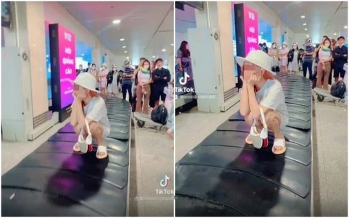Trong lúc đợi lấy hành lý, cô gái này đã có hành động ngồi trên băng chuyền để quay clip đăng mạng xã hội TikTok.