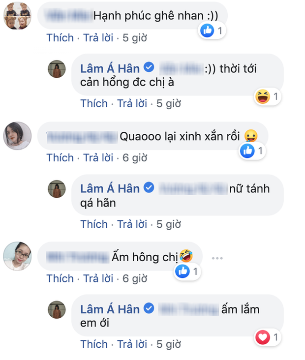 Bên dưới bức ảnh công khai tình yêu mới, Á Hân nhận được nhiều lời chúc mừng của bạn bè. Cô nàng trả lời từng comment của mọi người.