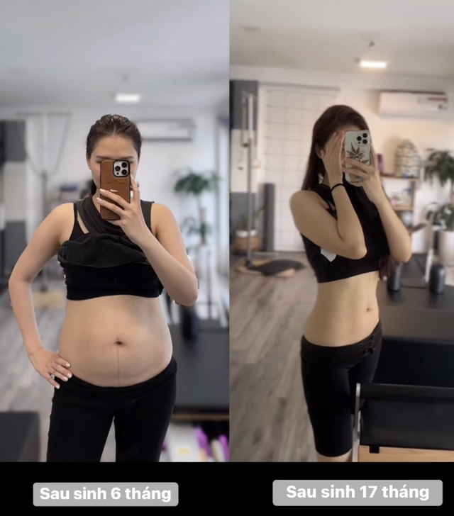 Mới đây, Phanh Lee gây chú ý khi chia sẻ hình ảnh so sánh trước và sau khi giảm 10kg gây ngạc nhiên vì những thay đổi quá rõ ràng. Bức ảnh đầu chụp sau khi cô sinh con thứ 2 được 6 tháng và body lúc 17 tháng đã "đánh bay" vòng hai lớn, trả lại vòng bụng thon thả như thuở còn xuân.