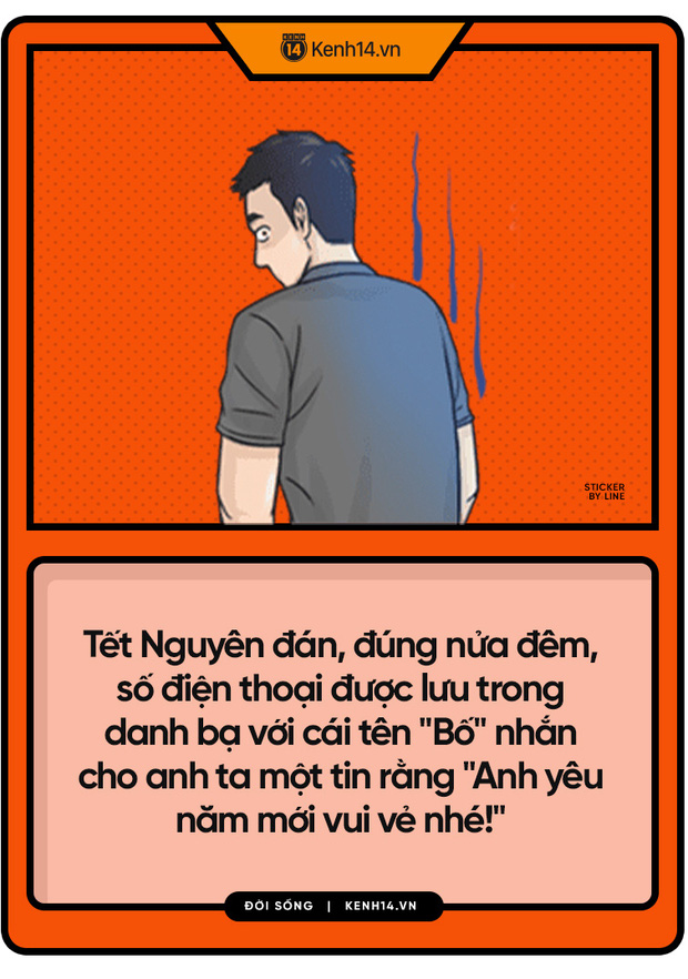 3. Tết Nguyên đán, đúng nửa đêm, số điện thoại được lưu trong danh bạ với cái tên "Bố" nhắn cho anh ta một tin rằng "Anh yêu năm mới vui vẻ nhé!"