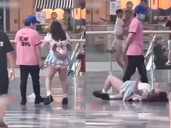 Cụ thể, ngay trong trung tâm thương mại, một cô gái có vẻ như đang giận dỗi người yêu đã quyết định... nằm lăn ra cả khu trung tâm để "ăn vạ". Cô gái trẻ còn liên tục kêu khóc thảm thiết và giãy đành đạch theo đúng nghĩa đen.