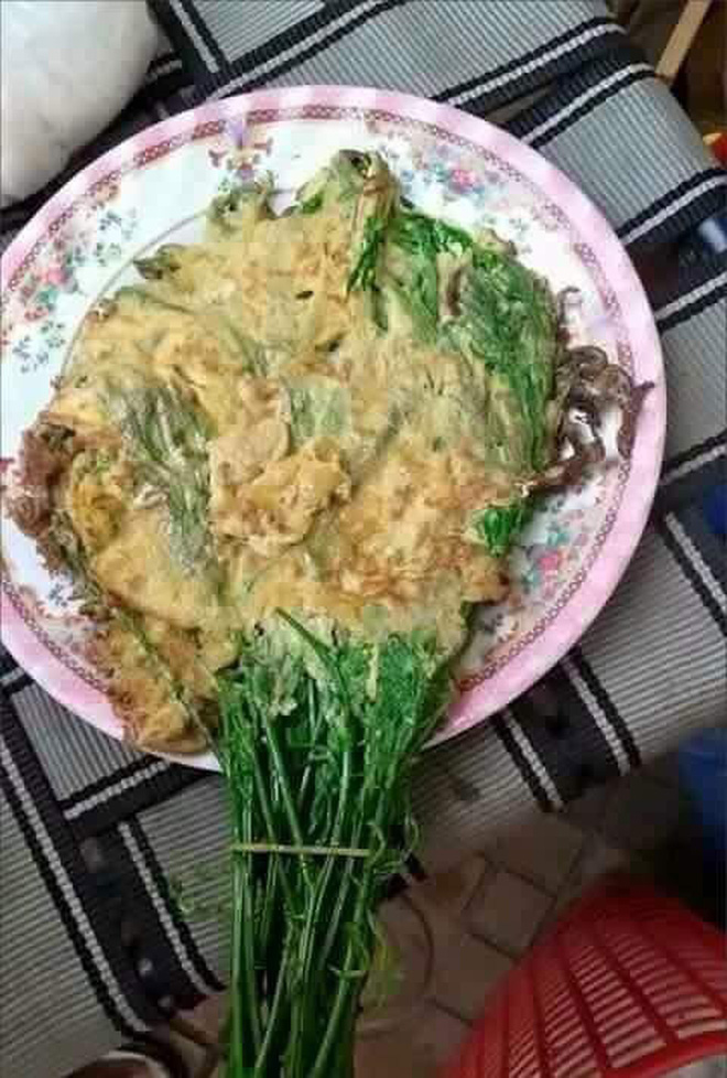 Mới đây trên mạng xã hội truyền tay nhau loạt ảnh chụp tác phẩm trứng chiên nhồi rau của một cô nàng trong lần đầu về nhà người yêu. Thành phẩm thu hút hàng nghìn lượt tương tác, khiến dân mạng nghiêng ngả.