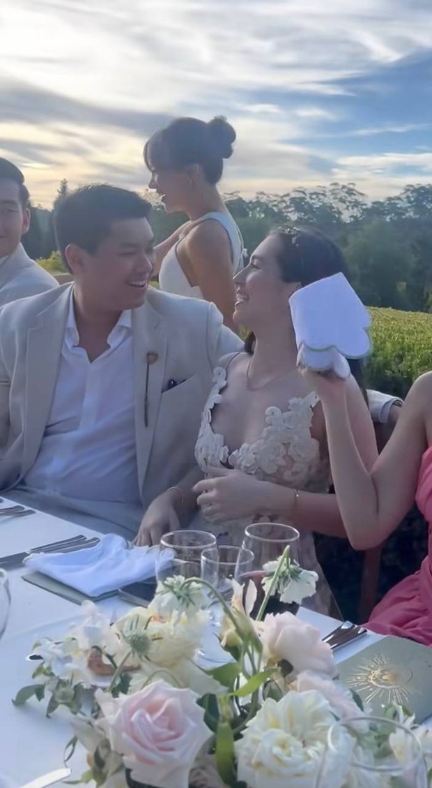Mặc dù đã ngồi cạnh nhau nhưng nam thiếu gia vẫn phải khoác tay qua ghế để ôm bạn gái. Không những vậy, ánh mắt trìu mến, tình tứ khi nhìn người yêu của Hiếu Nguyễn cũng đủ khiến netizen cảm thấy ngọt ngào. Một điểm tinh tế nữa ở thiếu gia út nhà tỷ phú chính là anh chọn vị trí ngồi cạnh con trai và để bạn gái ngồi cạnh chị em thân thiết để dễ trò chuyện.