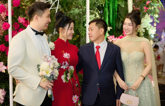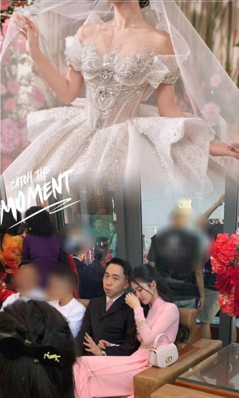 Trong ảnh, Phương Nhi diện áo dài hồng, cầm túi sách xuyệt tông, nếu để ý sẽ nhận ra, đây chính là bộ áo dài mà nàng Á hậu diện trong lễ ăn hỏi của anh trai. Có thể thấy thiếu gia Minh Hoàng cũng tới chung vui cùng gia đình Phương Nhi trong ngày trọng đại của anh vợ tương lai.