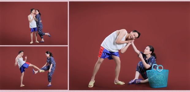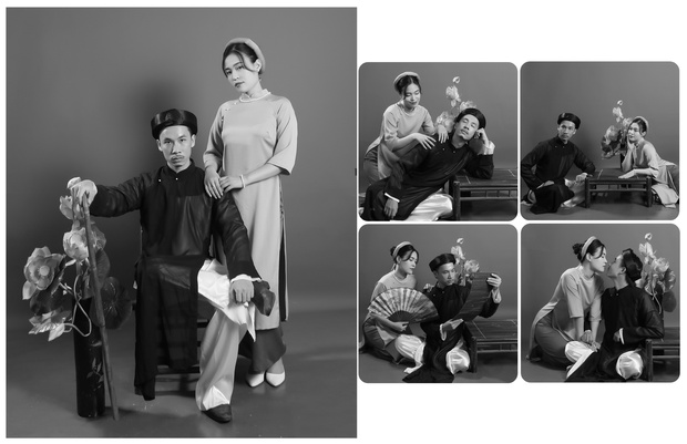 Việt Anh cũng thoải mái tiết lộ bộ ảnh cưới cực kỳ đặc biệt của mình. Theo đó, ngoài trang phục vest hay váy cưới như thông thường, cô dâu chú rể còn chụp ảnh với áo dài và quần áo ở nhà "nhí nhố". Trong đó áo dài chính là phong cách Bá Kiến - 1 vai diễn ấn tượng khác của Việt Anh.